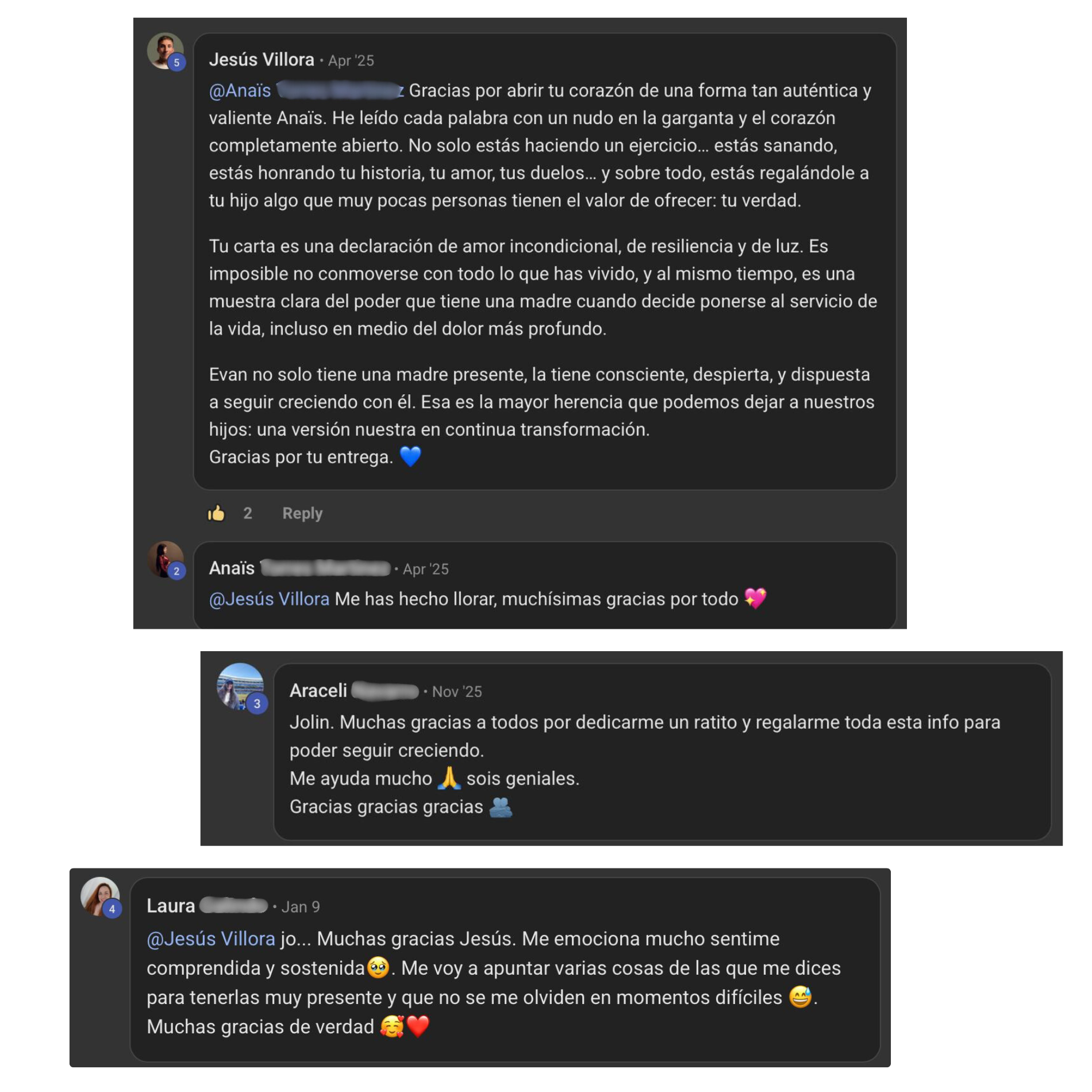 Valoro mucho el trato individual y cercano que siento con al compartir mis problemas. Me ayuda a afrontar los baches de la crianza, los desafíos con mi ex y por supuesto, a sentirme mejor conmigo mismo.